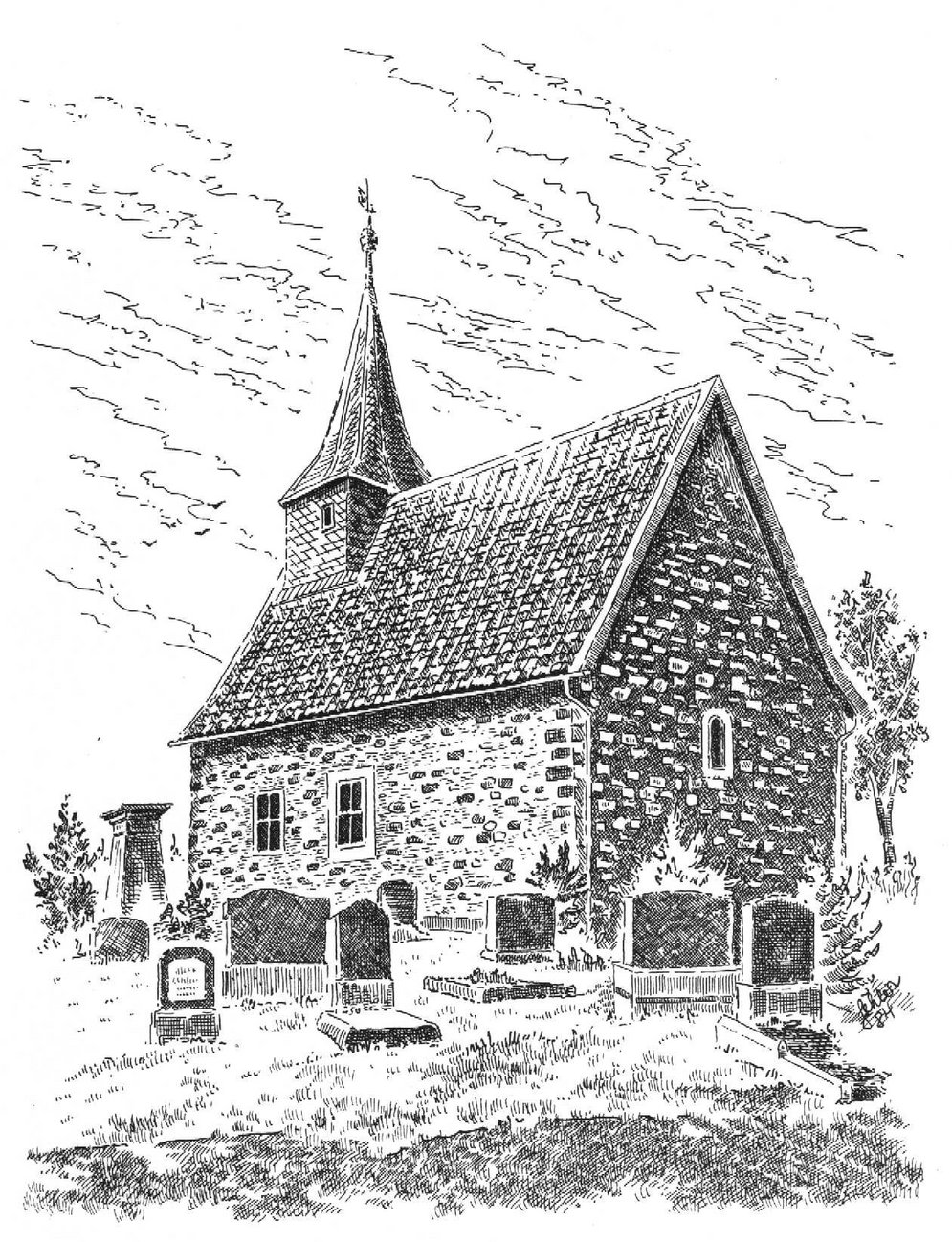 Da das Bruchmauerwerk unverputzt ist, erkennt man auf der Südseite den ehemaligen Eingang, der im Jahre 1886 in den Westgiebel verlegt wurde.